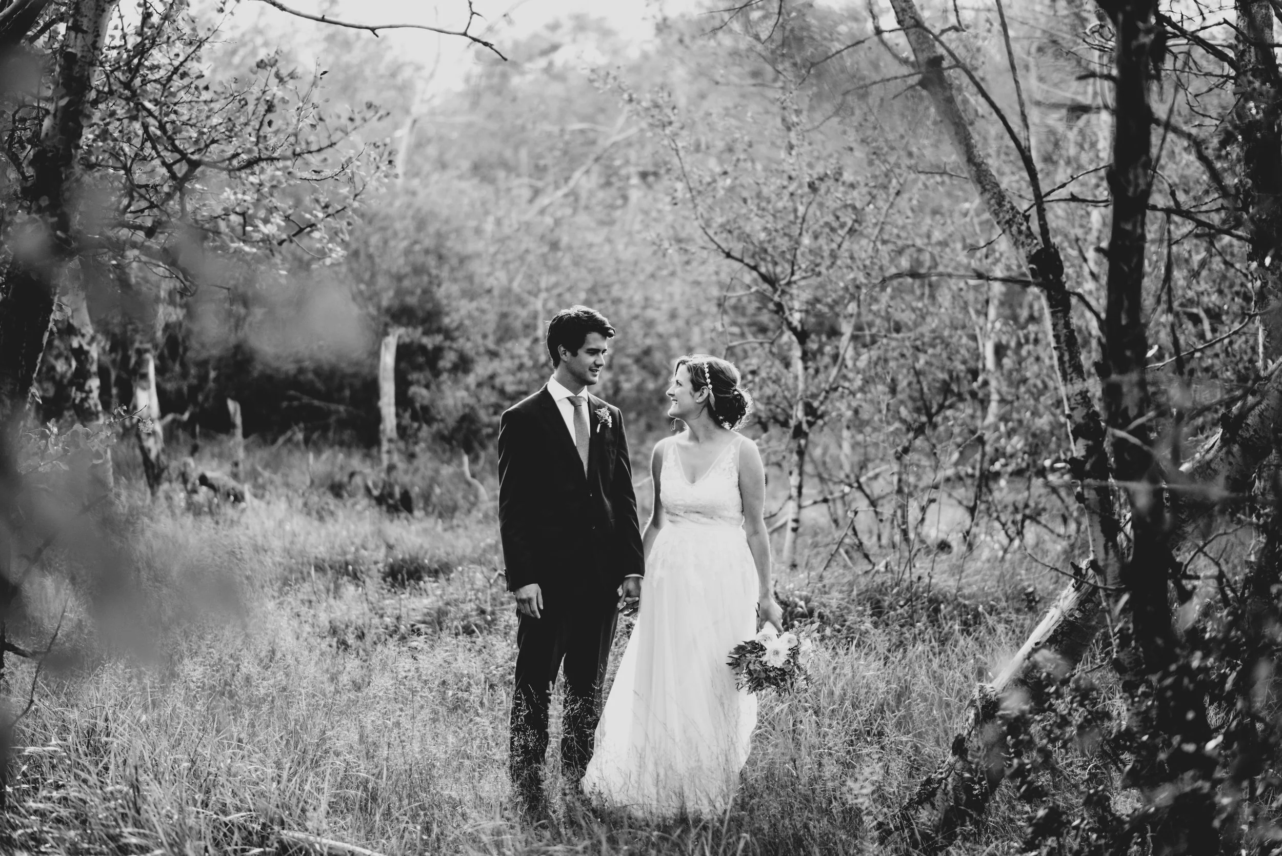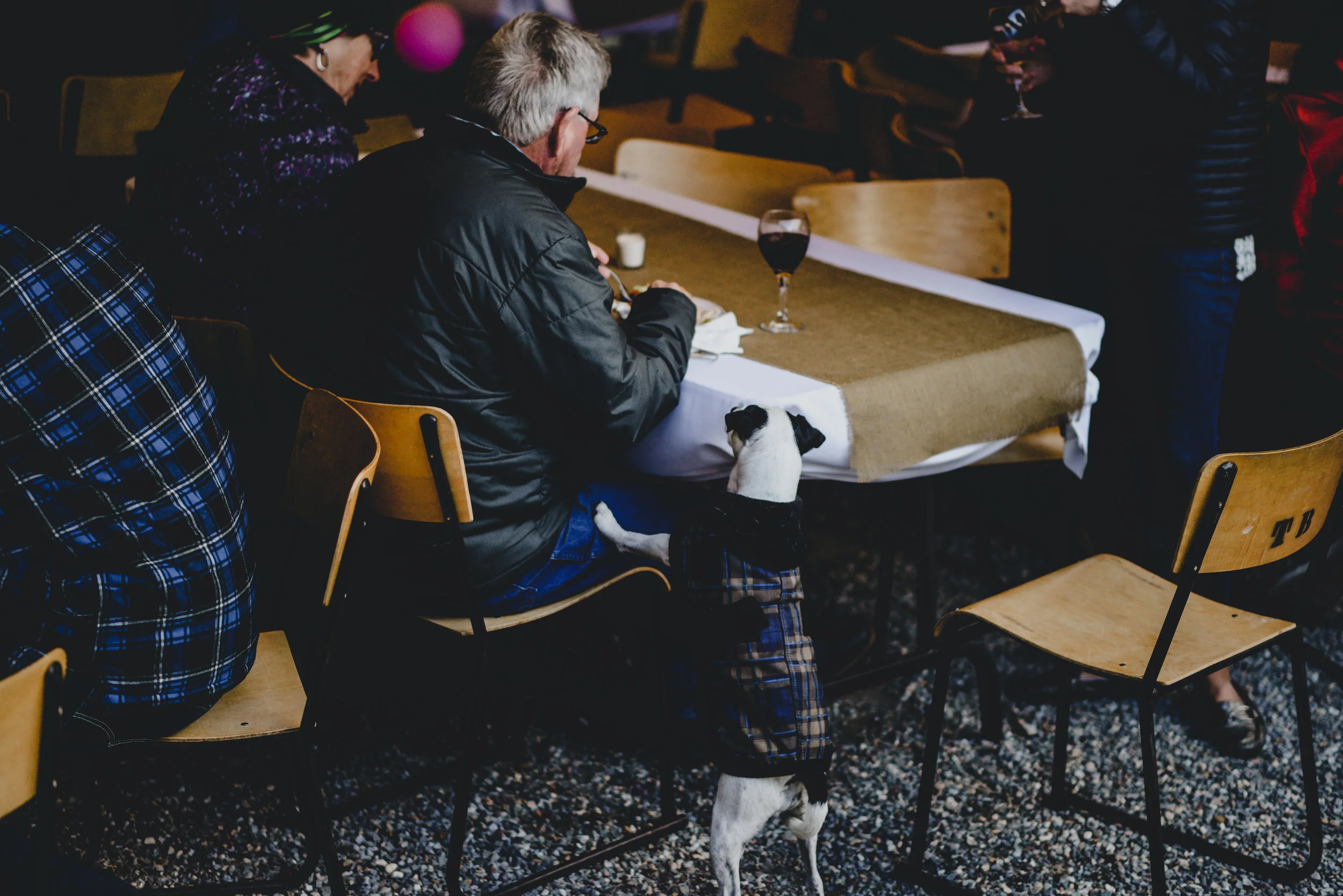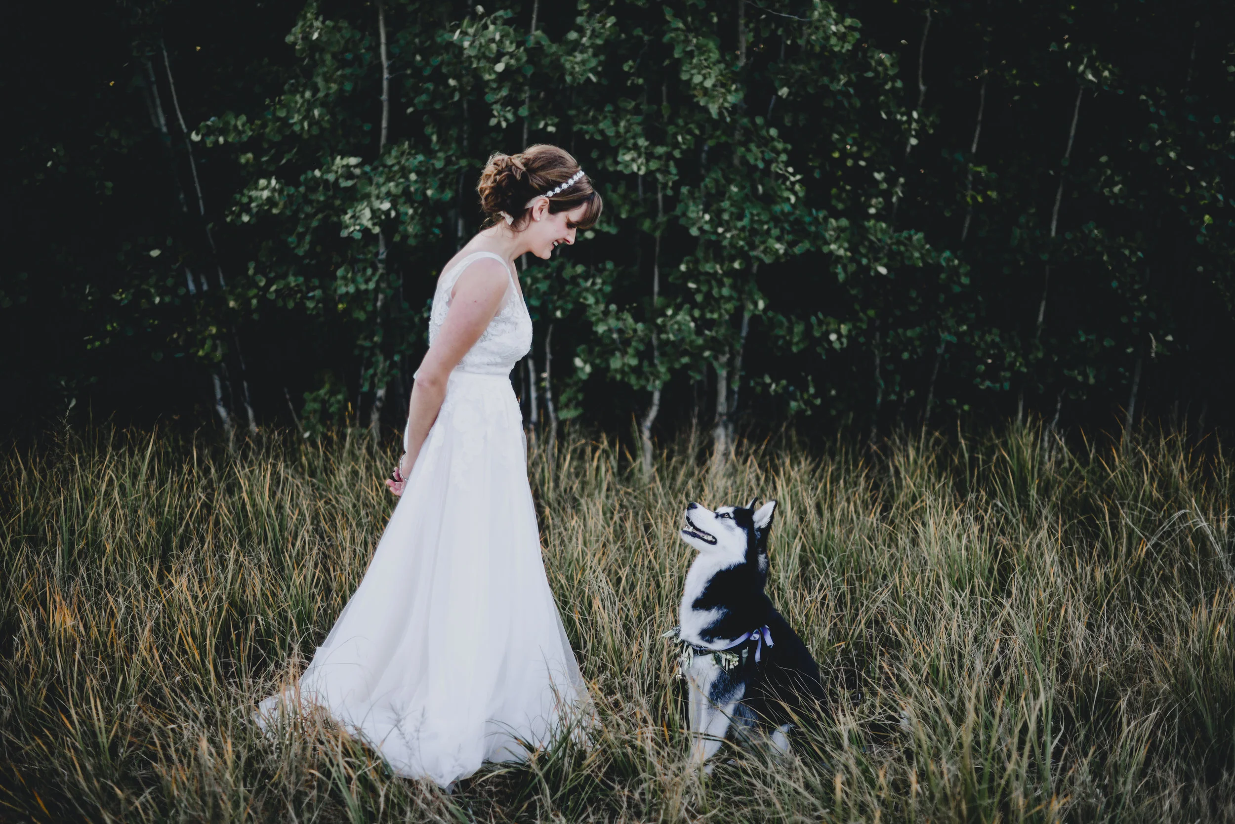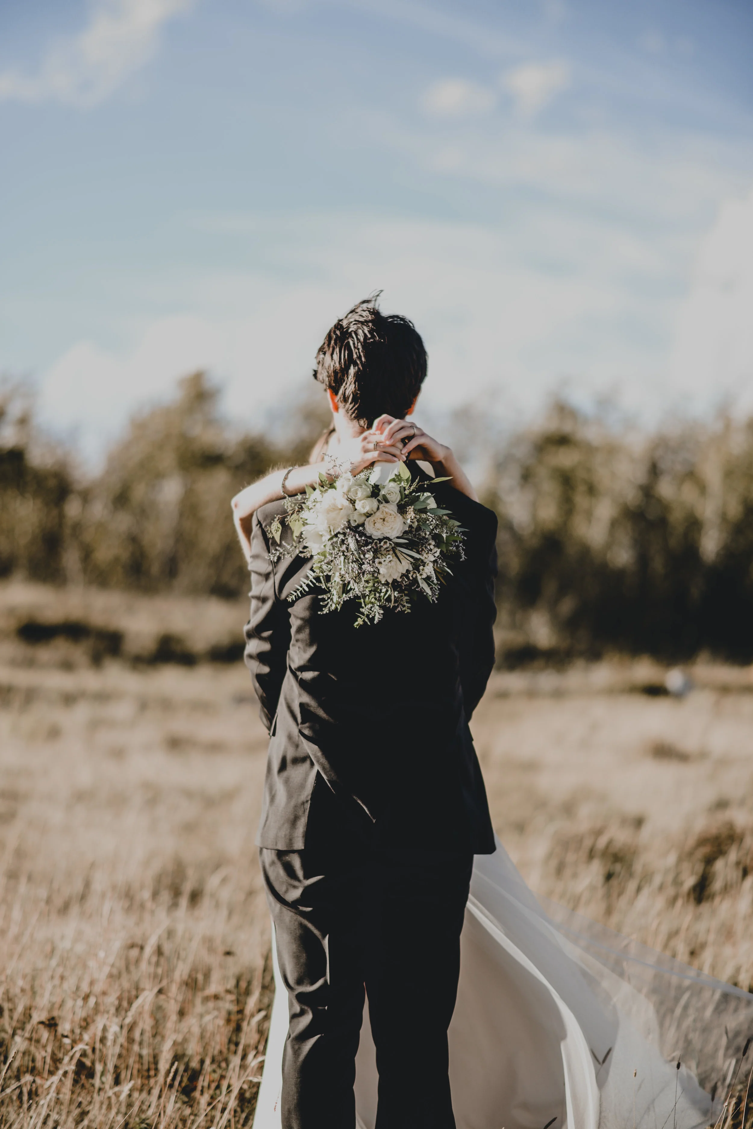 Part one of Mikey + Danielle's wedding was on a sun-kissed Saturday. They found a spot sheltered from the wind in the middle of the forest to say their vows + exchange rings in front of nine of their loved ones. There was a ring warming ceremony + two of their dogs exploring between between the trees + handmade bouquets. After their first kiss as husband + wife + all the hugging that followed, we wandered through the forest + to a clearing with a view of the mountains to take photos. Then they concluded their wedding day with toasts + dinner in their family cabin, sharing food + laughter.